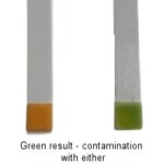 As little as 0.1% DEF will turn the strip green and the same 0.1% water will give the same reaction. At 1% DEF the strip will begin to turn BLUE in a few seconds.